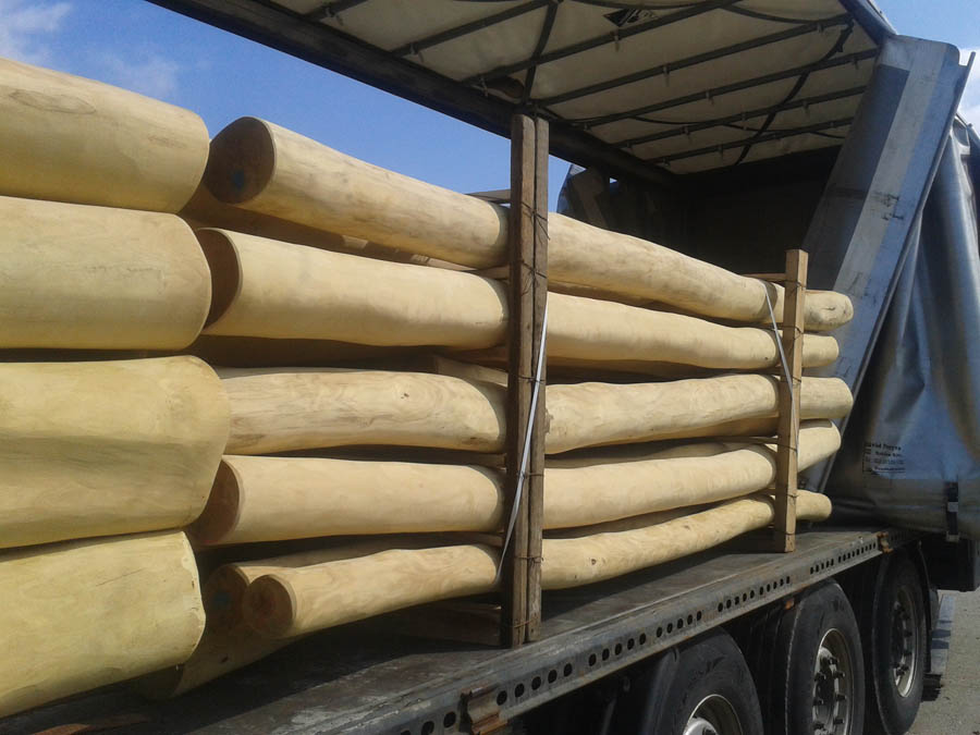 | Robinien-Halbrundholz – wie gewachsen mittig mit Bandsäge halbiert | ||